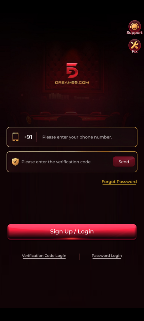 Dream55Game me register karne ke liye website ya app open kare Sign Up par click kare mobile number dale OTP verify kare aur account turant create ho jata hai