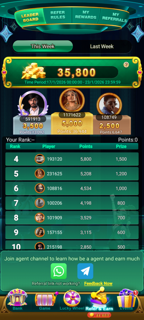 Players cash tables aur tournaments me participate kar ke real money earn kar sakte hain Large prize tournaments me top performers ko attractive rewards milte hain Referral program ke zariye friends ko invite kar ke extra bonus earn kiya ja sakta hai Regular players ke liye daily rewards aur cashback offers bhi available hain jisse overall earning improve hoti hai YONO banking integration ke zariye payments aur withdrawals fast aur hassle-free hote hain Users ko apni financial limits me khelna chahiye aur responsible gaming follow karni chahiye Consistent practice aur smart strategy se long-term earning potential enhance hota hai