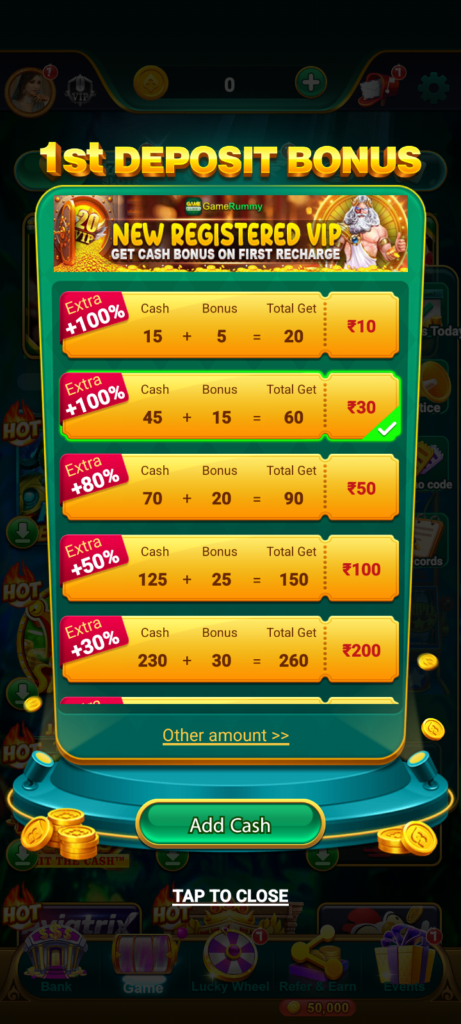 • Note Deposit limit aur methods har app me alag ho sakte hain. Paise sirf entertainment ke liye use kare aur apni limit me hi play kare.